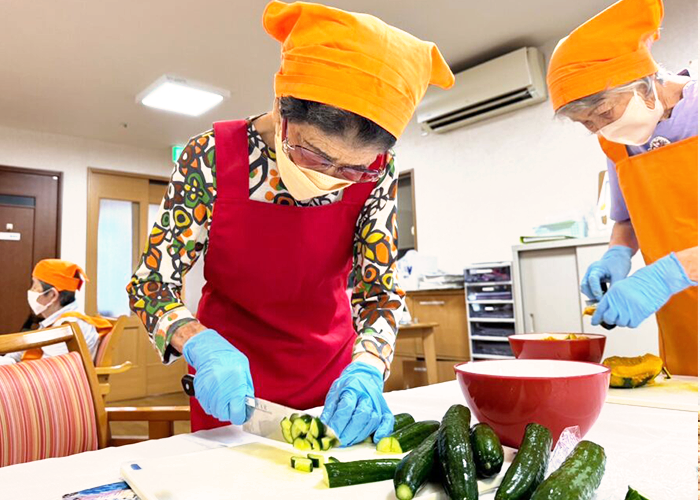毎日を自分らしく過ごすためには安心・安全に生活できる環境と、できることをできる限り自分で行う生活が大切です。リハビリ専門職、介護職員、ケアマネジャーが連携し、お客様の身体機能や生活習慣に合わせ住宅改修を提案したり福祉用具の利用を提案しています。環境を整えた上で、お客様の身体能力を最大限活かすことができるケアの方法をリハビリ専門職、介護職員、ケアマネジャー、看護師がチームで検討していきます。